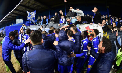 Navijačka grupa Plava unija proslavila povratak OFK Beograda na matični teren pesmom, iako golova nije bilo