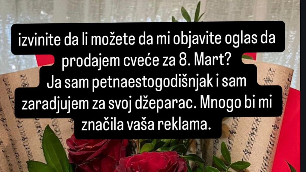 Petnaestogodišnjak prodaje cveće za 8. mart kako bi sam zaradio džeparac